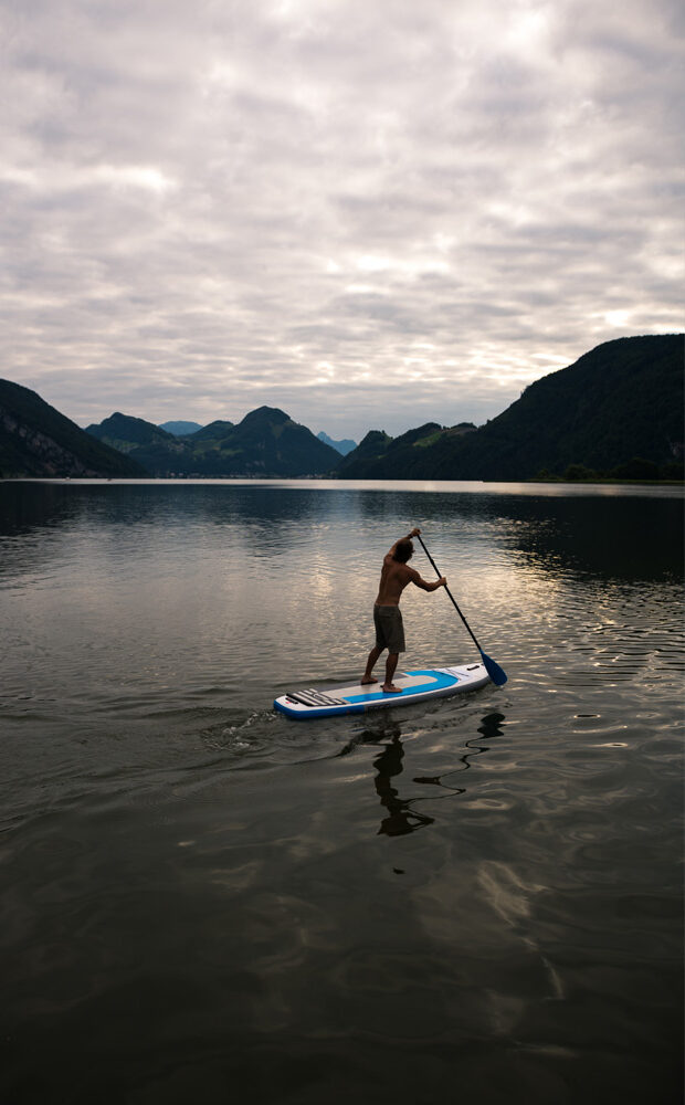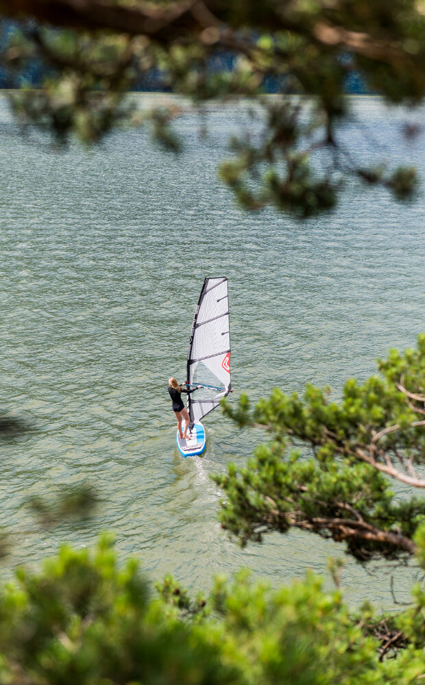 Any commercial windsurf sail system can be connected to the ENSIS inflatable 1Board3Sports with only a few simple steps. The concealed screw connection is not noticeable when paddling and easily transforms the paddle board into a windsurfing board. The ENSIS board glides dynamically across the water making every session fun.